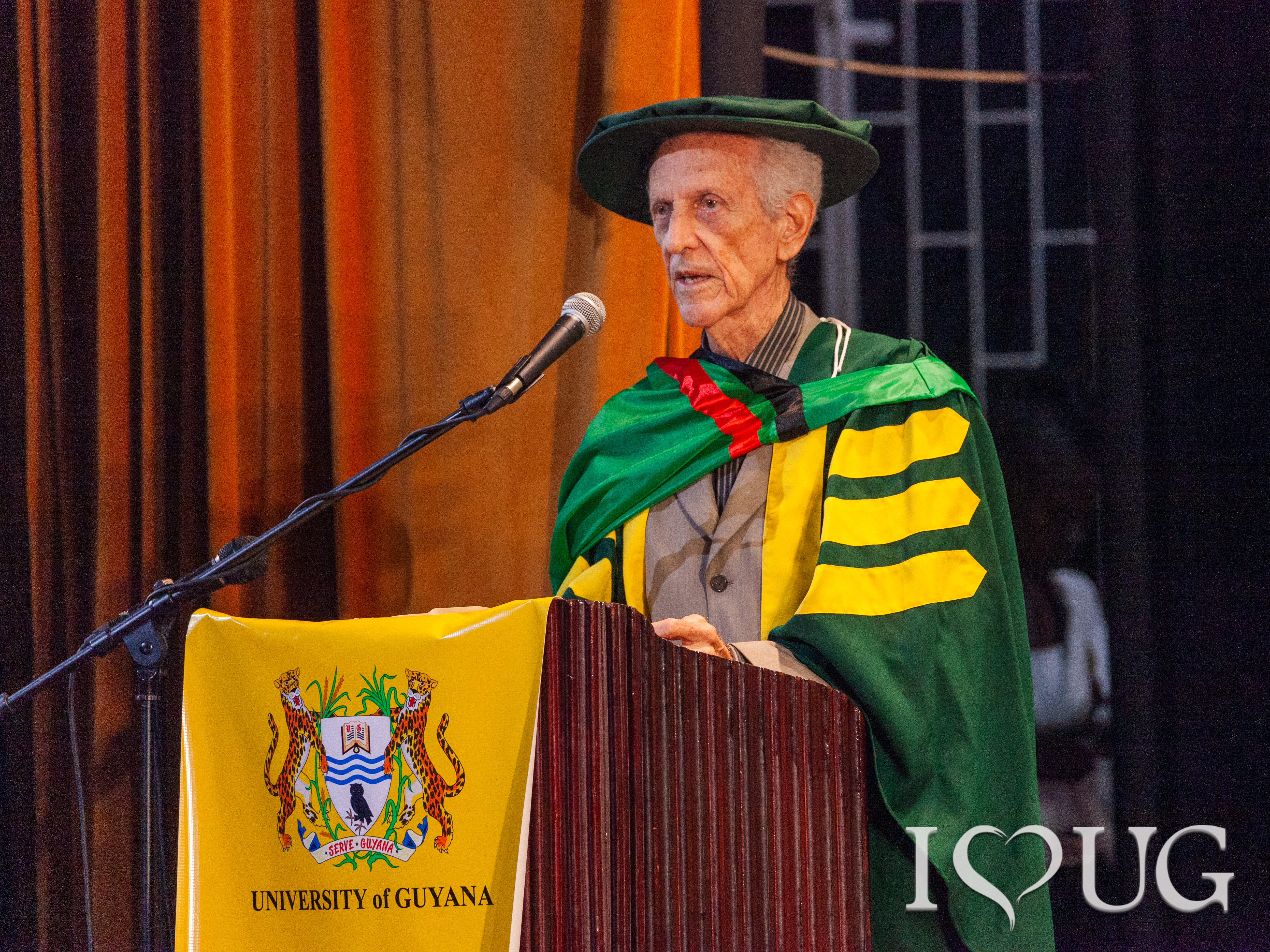 Dr. Dave Martins, a distinguished Guyanese musician, songwriter, and cultural icon, was born on April 10, 1935. Martins became renowned for his powerful use of Guyanese Creole and English, crafting songs and stories that authentically captured Caribbean life and identity. From 2017 to 2018, he served as UG’s second Artist-in-Residence, traveling throughout Guyana to share his music, culture, and pride through concerts, lectures, and masterclasses. His contributions were immortalized in the university-produced documentary, The Man Behind the Music: DAVE MARTINS. After his passing on August 18, 2024, following a prolonged illness, he was celebrated as a “Caribbean Hero” and “Timeless Voice,” leaving a legacy of cultural pride and artistic excellence.