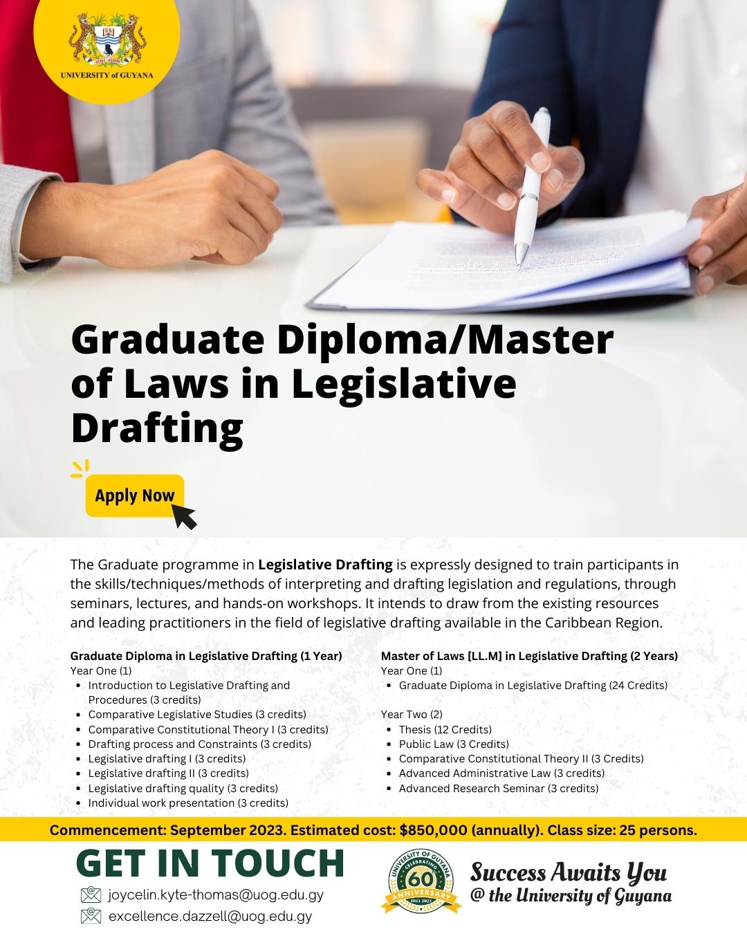 Kindly see the Call for Applications to the Graduate Diploma/Master of Laws in Legislative Drafting flyer below and other supporting documents.